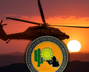 "Forjada no fogo da conquista, eternizada no metal da glória."