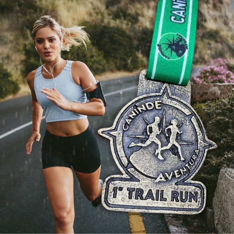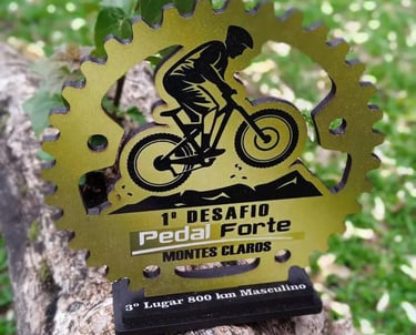 "Medalhas de Metal Forjada na velocidade, eternizada na chegada."