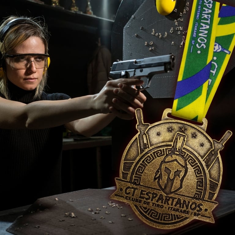 "Medalhas de Metal Fundido Personalizadas para Clube de Tiro: Precisão e Honra em Cada Detalhe"