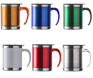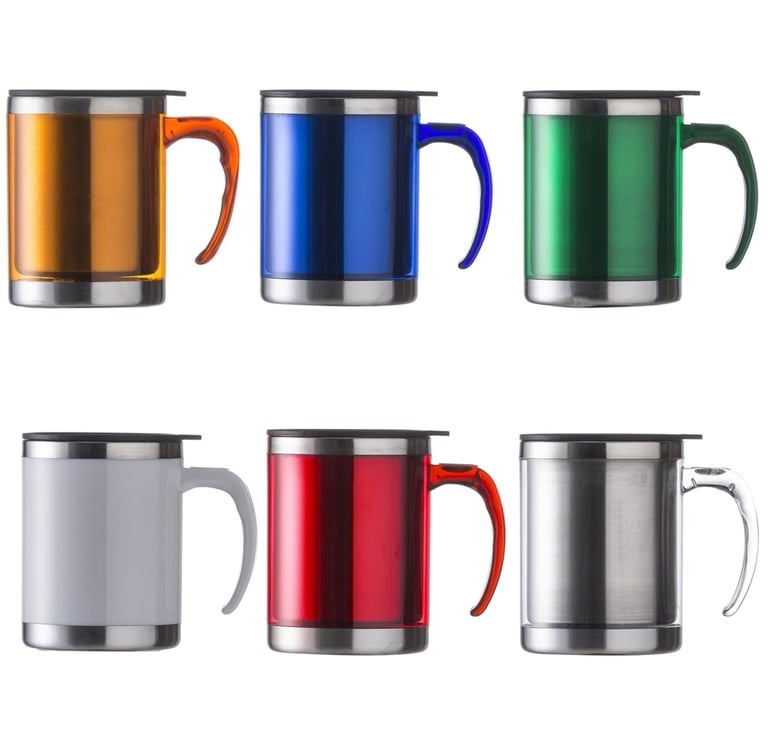 Descrição: Caneca acrílica 400ml com detalhe oval no pegador, revestimento interno e detalhes em inox. Tampa plástica resistente com sistema giratório para abertura(não é térmica).