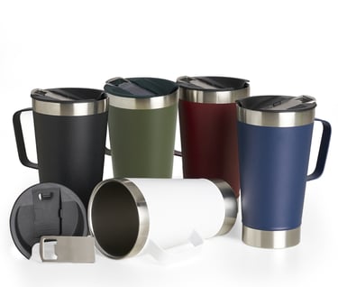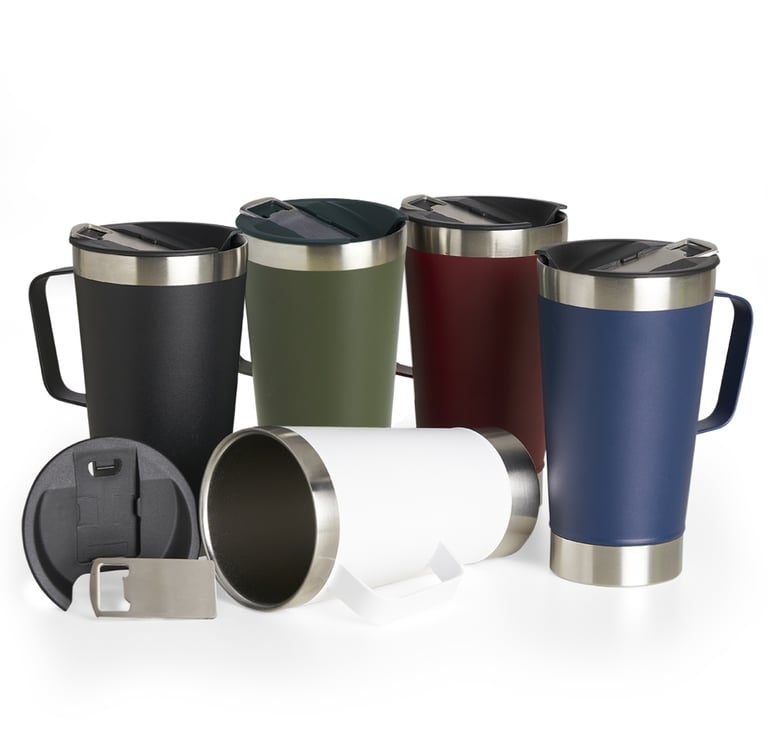 Descrição: Caneca térmica de inox com capacidade para 500ml. Acompanha uma tampa de plástico e um abridor de garrafas. O abridor fica preso em um encaixe existente na tampa, porém é removível.