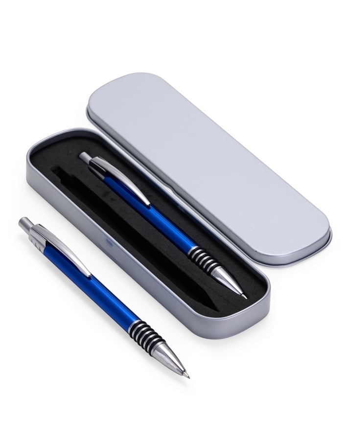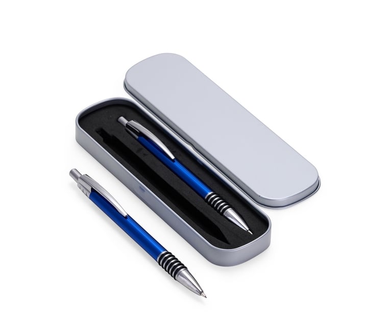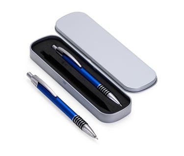 Descrição: Com este conjunto de caneta e lapiseira metálicas, escrever será uma experiência ainda mais sofisticada e elegante. O estojo em metal que as acomoda, possui revestimento em espuma para evitar riscos. A caneta possui carga esferográfica azul de 1.0mm, com acionamento por clique, já a lapiseira possui grafite 0.7mm.