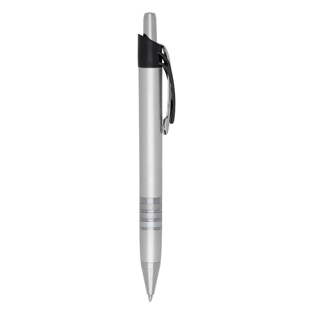 Descrição: Caneta plástica com carga esferográfica azul e acionamento por clique.