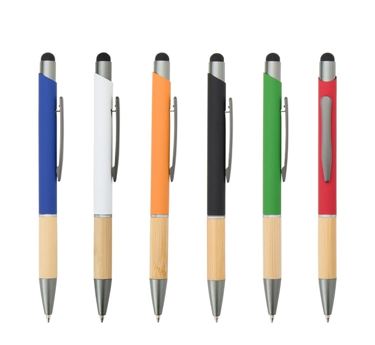 Descrição: Perfeita para promover ações sustentáveis, nossa Caneta Metálica Touch oferece uma combinação de funcionalidade e praticidade. Com detalhe em bambu e design confortável, ela proporciona uma experiência sustentável e suave ao toque. Além disso, conta com carga esferográfica na cor azul e acionamento por clique, acompanhada de uma ponta touch, ideal para interagir com os dispositivos.