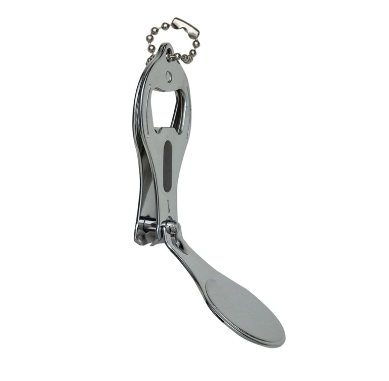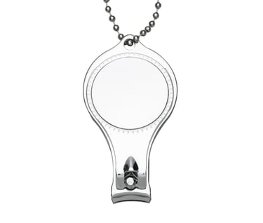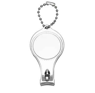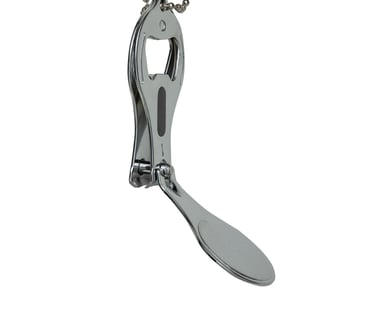 Descrição: Chaveiro metal 3 em 1: abridor, cortador e lixa. Parte central circular ideal para gravações, detalhe de traços no contorno circular. Lado frontal com detalhes em relevo nas laterais e pequeno círculo acima do abridor. Para utilizar o cortador basta rotacionar a peça cirular e levantá-la. Acompanha correntinha.