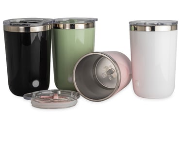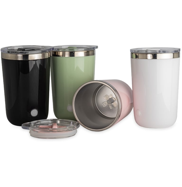 Descrição: O Copo com Misturador Magnético é prático e inovador, ideal para quem busca a textura perfeita em suas bebidas. Com motor de alta velocidade, ele mistura facilmente líquidos de até 300ml e pós, como café, chá, proteínas, glicose, leite em pó e muito mais, tudo com apenas um clique para ativar a agitação automática. Fabricado em aço inox SUS 304, conta com tampa acrílica com bocal e trava de segurança, entrada USB para recarregar o motor através do cabo que acompanha o copo. Esse copo é perfeito para quem deseja praticidade na preparação de bebidas.