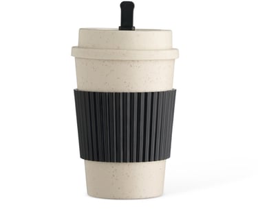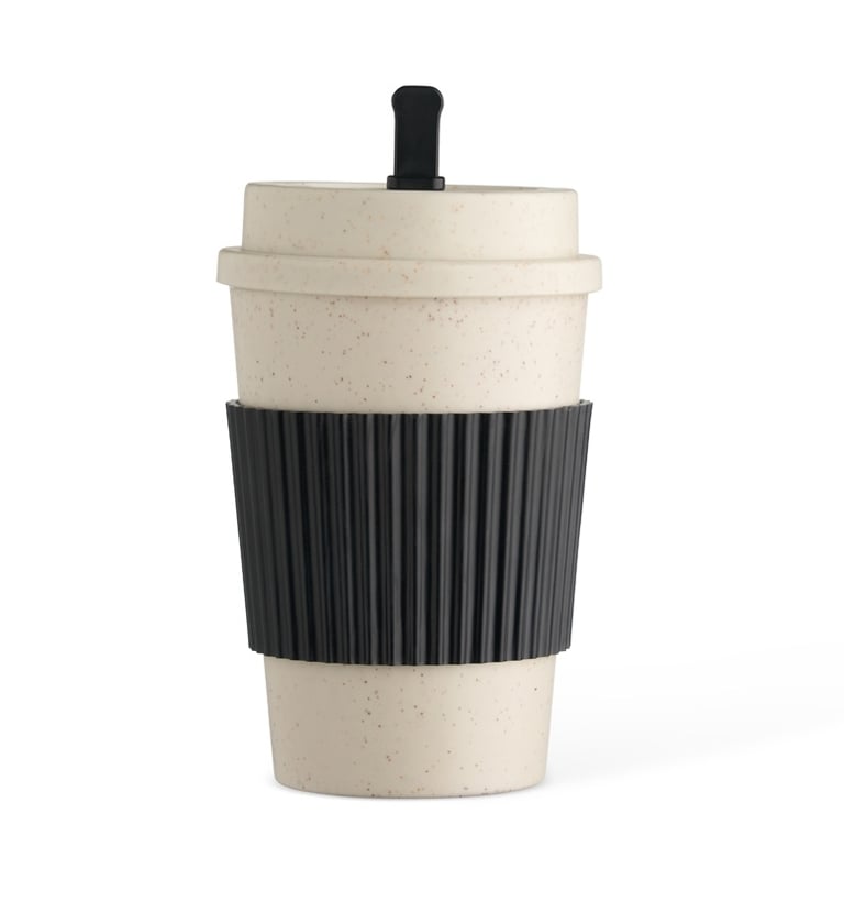 Descrição: Copo Fibra de Trigo 450ml com tampa rosqueável. Acompanha mexedor e manga protetora antiderrapante.