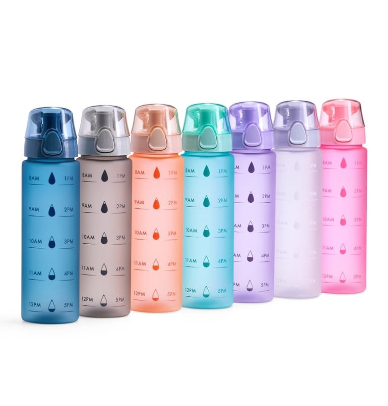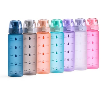 Descrição: Mantenha-se hidratado com a nossa garrafa ideal para o dia a dia. Feita de plástico resistente, ela combina praticidade e funcionalidade com um design inteligente. Possui tampa com bocal e botão de acionamento para facilitar o uso, alça para transporte que garante praticidade onde quer que você vá, e um marcador de horário que ajuda a lembrar de se hidratar ao longo do dia, além de motivar quem tem dificuldade em manter uma rotina de consumo de água.