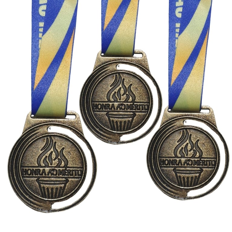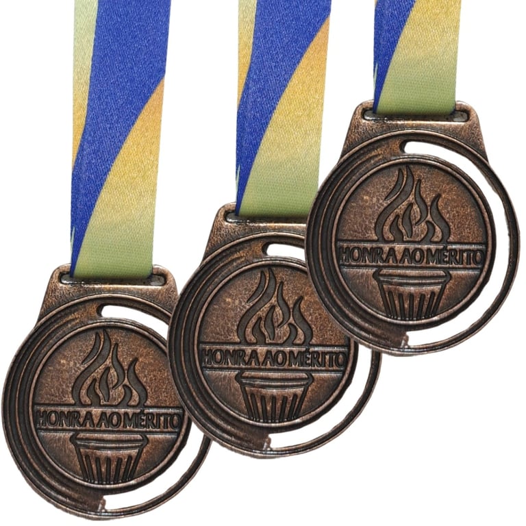 a medalha de metal fundido personalizada eterniza a glória dos campeões do esporte."