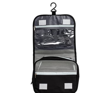 Descrição: A bolsa de higiene pessoal para viagens é a escolha perfeita para quem busca praticidade e organização. Feita em tecido Oxford resistente à agua, ela é fácil de limpar. Com um design funcional, possui compartimentos amplos que acomodam itens essenciais, desde acessórios de maquiagem, como pincéis à cremes e escovas de dente. Além de contar com um gancho prático para pendurar e manter tudo ao seu alcance. Compacta, mas com muito espaço, esta nécessaire combina estilo moderno e praticidade.