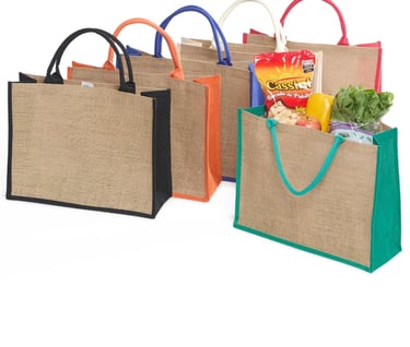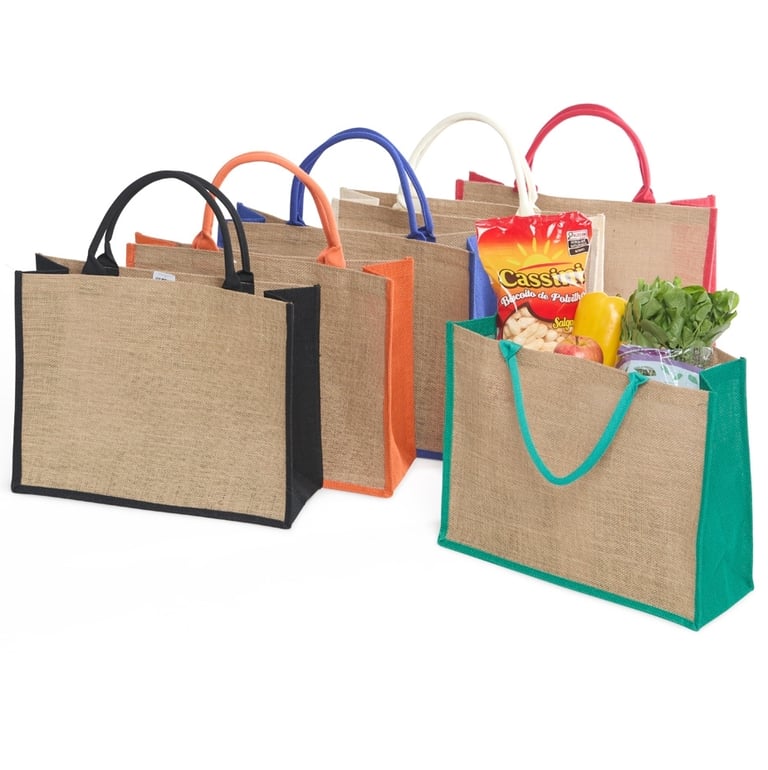 Descrição: Sacola ecológica confeccionada em juta com alças costuradas na parte interna.